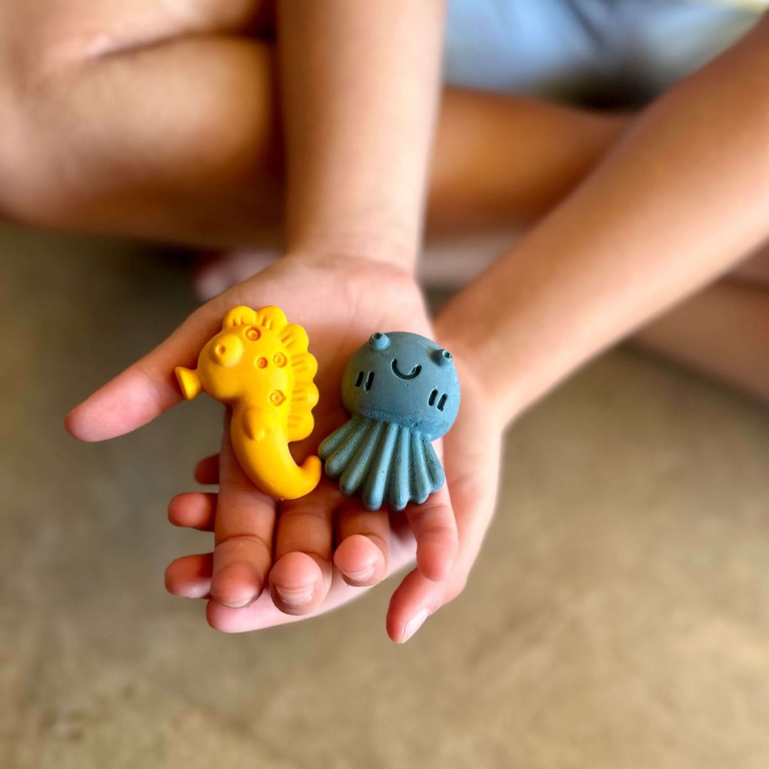 Handmade bath crayons that are durable and non-toxic – encouraging fine motor skills, creative thinking, and imaginative play. Uniquely shaped crayons perfect for little hands to draw those much-loved masterpieces on paper, wall and floor tiles, and even the bath! These versatile crayons can also be used as pretend-play figurines, stacking toys or counters, with endless free-play possibilities. Recommended for toddlers 12+ months with the following crayon boxes available: