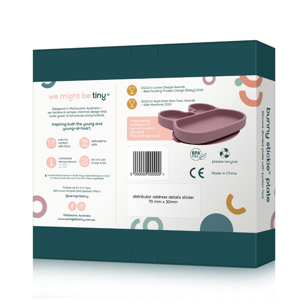 The award-winning bunny stickie® silicone suction plate lets you neatly portion your foodie creations in three sections – instantly spoiling your fussy eater with a personal three course delight. It is easily secured to almost any solid surface with its super suction base, withstanding even the most determined baby or toddler. Made of premium food-grade silicone, this versatile and durable product is dishwasher, oven and microwave safe (up to 230°C), as well as freezer friendly (up to -40°C). Enjoy newfound confidence that your little one’s plate won’t go flying across the kitchen. Proudly designed in Australia.