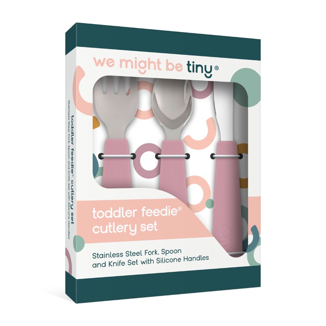 Have a curious toddler on your hands? This award-winning toddler cutlery set is exactly what your little explorer needs to dig in and take matters into their own hands. Before you know it, they will be the superstar self-feeder you know they can be! Each set includes a fork (14.2 cm), spoon (14.1 cm) and knife (15.7 cm) with a stainless steel eating and cutting surface. The perfect upgrade from the We Might Be Tiny silicone fork and spoon set; ergonomically designed to suit growing hands that are getting ready for big kid self-feeding. Once your tiny human is finished eating, simply pop the utensils into the dishwasher so you can high five them for their newfound mealtime independence, without having to deal with the mess. Proudly designed in Australia.